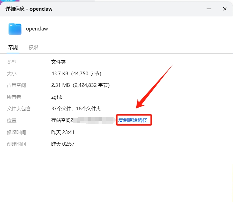 3、在文件管理里面建一个文件夹,用来部署openclaw。复制文件夹绝对路径。